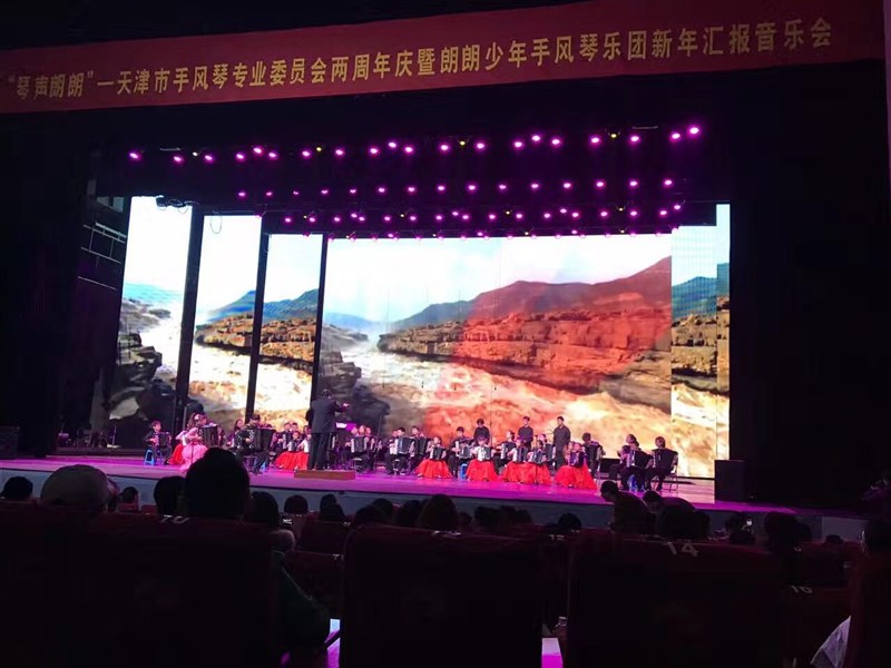(Summary description)2016.12.25 On the occasion of Christmas, the "Lang Lang"-Tianjin Accordion Professional Committee celebrated the second anniversary of the Lang Lang Junior Accordion Orchestra's New Year Report Concert at Tianjin Jinwan Grand Theater. Leaders of the Accordion Professional Committee attended the concert. Luo Songsen, Chairman of Huayun Musical Instruments Group, and Luo Jinqi, General Manager, served as Vice Chairman of the Accordion Committee. The Deputy Secretary General attended and watched the performance.